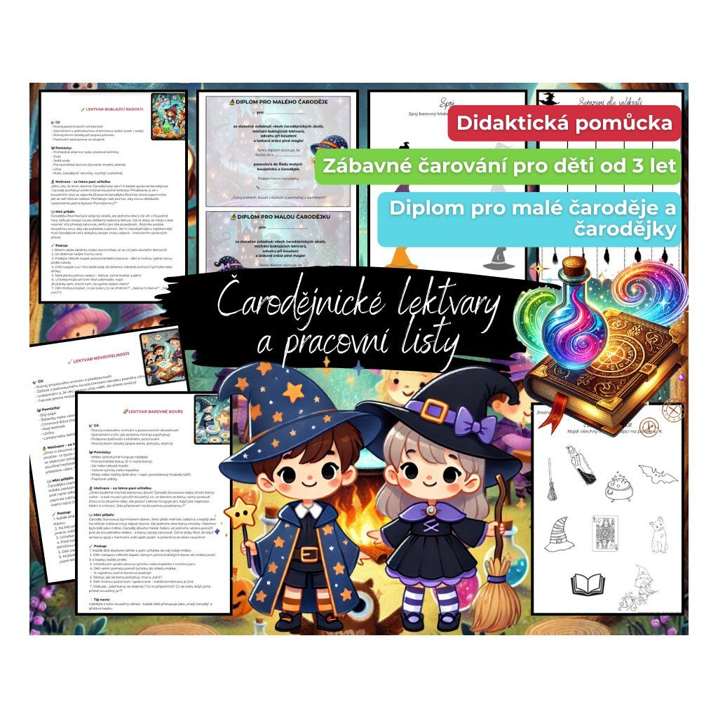 ✨ Kouzelná sada aktivit pro MŠ – lektvary, pokusy, příběhy, pracovní listy i diplomy! Staňte se s dětmi malými čaroději a prožijte nezapomenutelný Čarodějnický den! 🧙♀️🧹