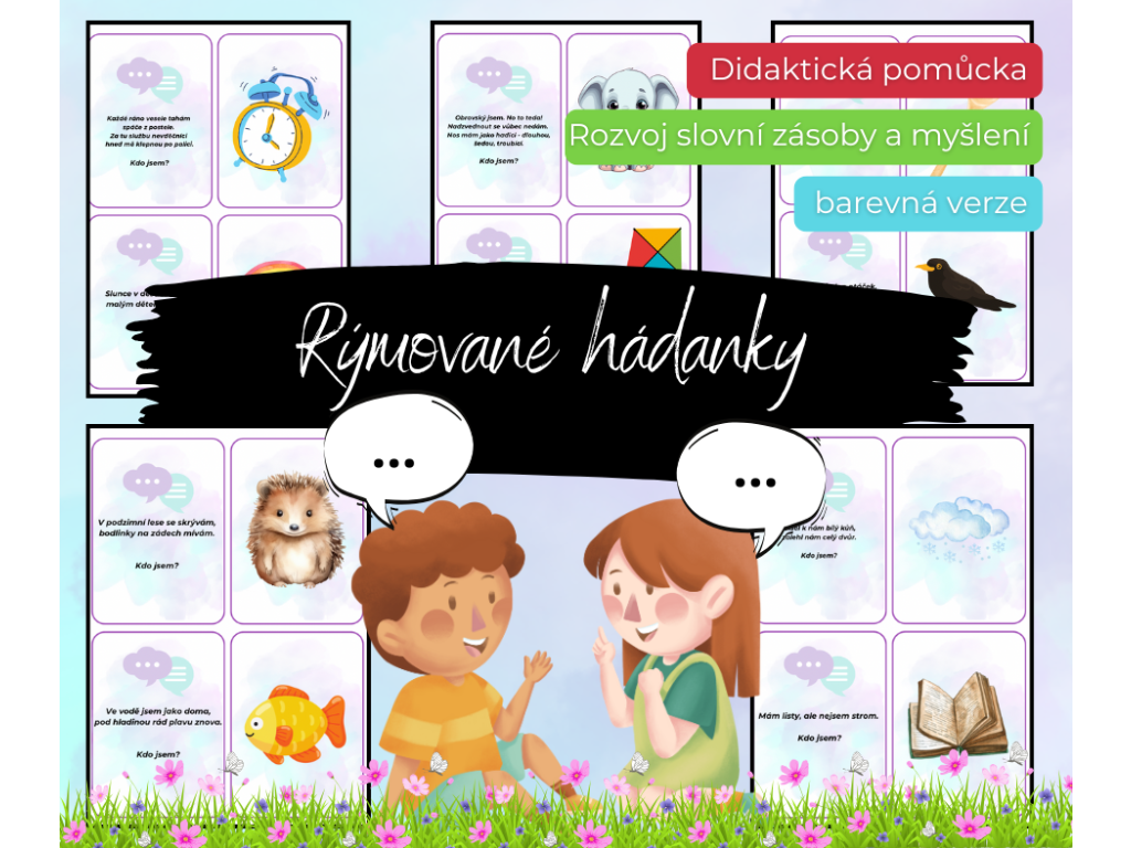 Deti hádajú na základe rýmovaného popisu, čo je na obrázku, a správne ho priraďujú. Podporujú logické myslenie, slovnú zásobu a rytmus reči. Perfektná pomôcka pre materské školy aj domáce vzdelávanie! 🗣️📖
